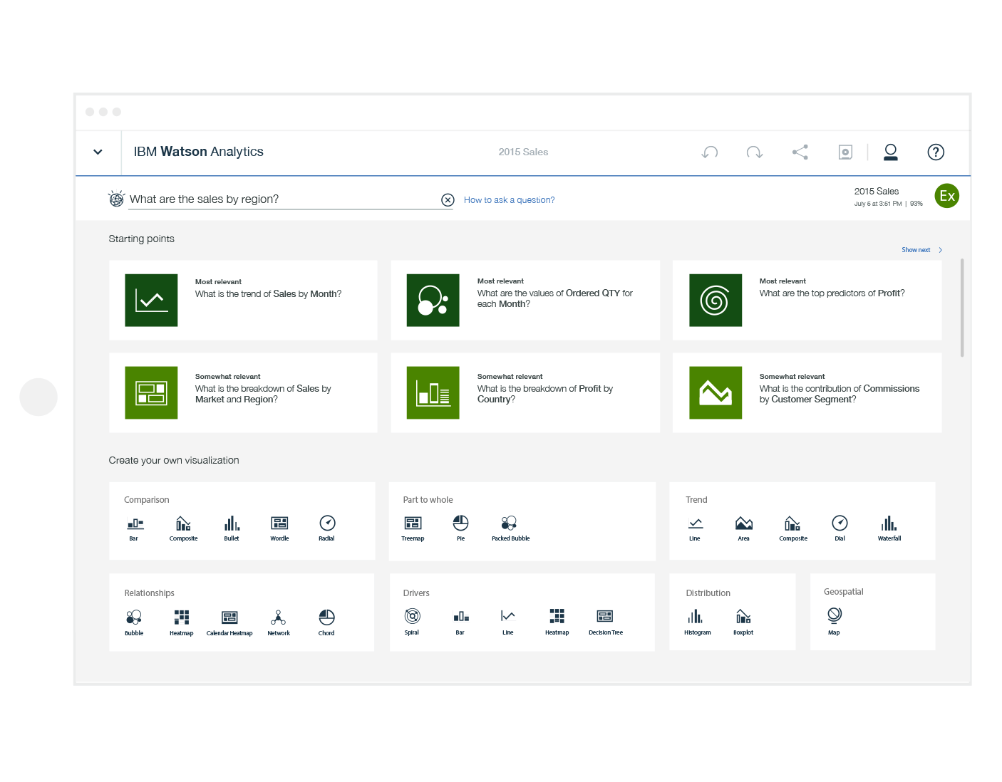 I led a talented team of devs, UX, product & visual designers to build and elevate IBM's design system. We extended that system across the marketing website and web app for Watson Analytics.